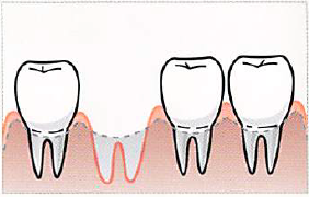粘膜(歯肉)に穴が空き、歯槽骨が露出し、抜歯スペースができます。 |