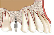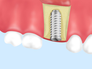 歯周病が原因で失ったあごの骨の再生目的に行われるのがGBR法です。骨量が少ない箇所へ骨補填剤を埋入し、スペースを確保して骨の再生を促します。インプラント手術の前または同時のタイミングでも行えます。