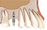 骨の幅が5mm未満の場合に用いられる治療法です。歯ぐきの横方向から穴を開け、上顎洞粘膜を押し上げたすき間に自家骨(身体から採取した骨など)もしくは人工骨を挿入して、インプラント治療に必要な骨量を確保します。