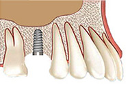 インプラントを埋入する穴から上顎洞の粘膜を押し上げ、すき間に自家骨または人工骨を挿入して、インプラント治療に十分な骨量を確保します。オステオプッシャーによって、より低侵襲に手術ができるようになりました。